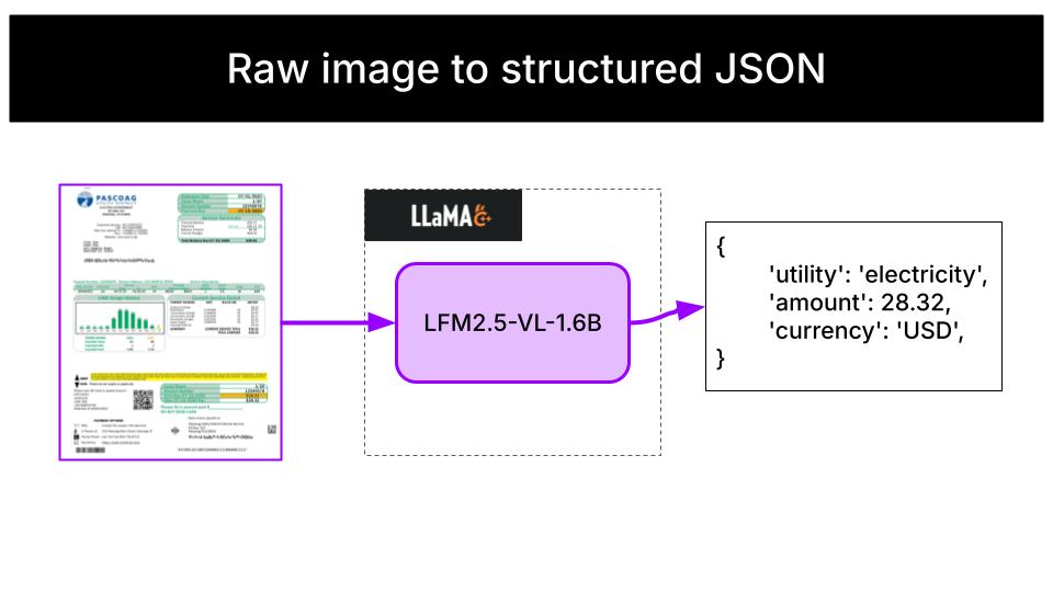 - Extract structured output from images using LFM2.5-VL-1.6B, a small vision-language model