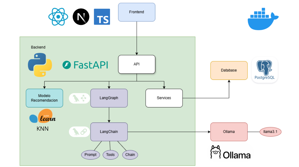 LangChain agents, Ollama LLMs, and scikit-learn models powering intelligent recommendations